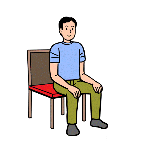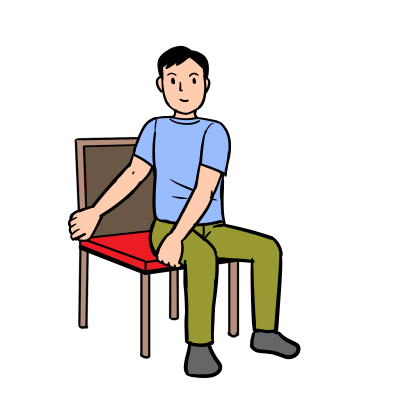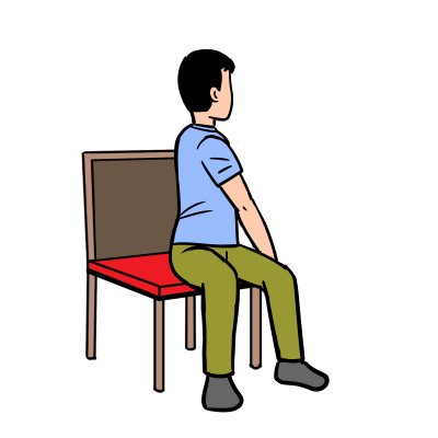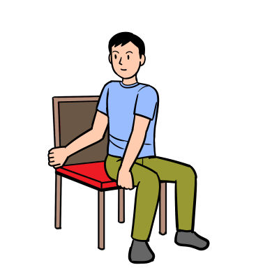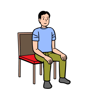 ① 椅子に浅く座り、足を腰幅に開く